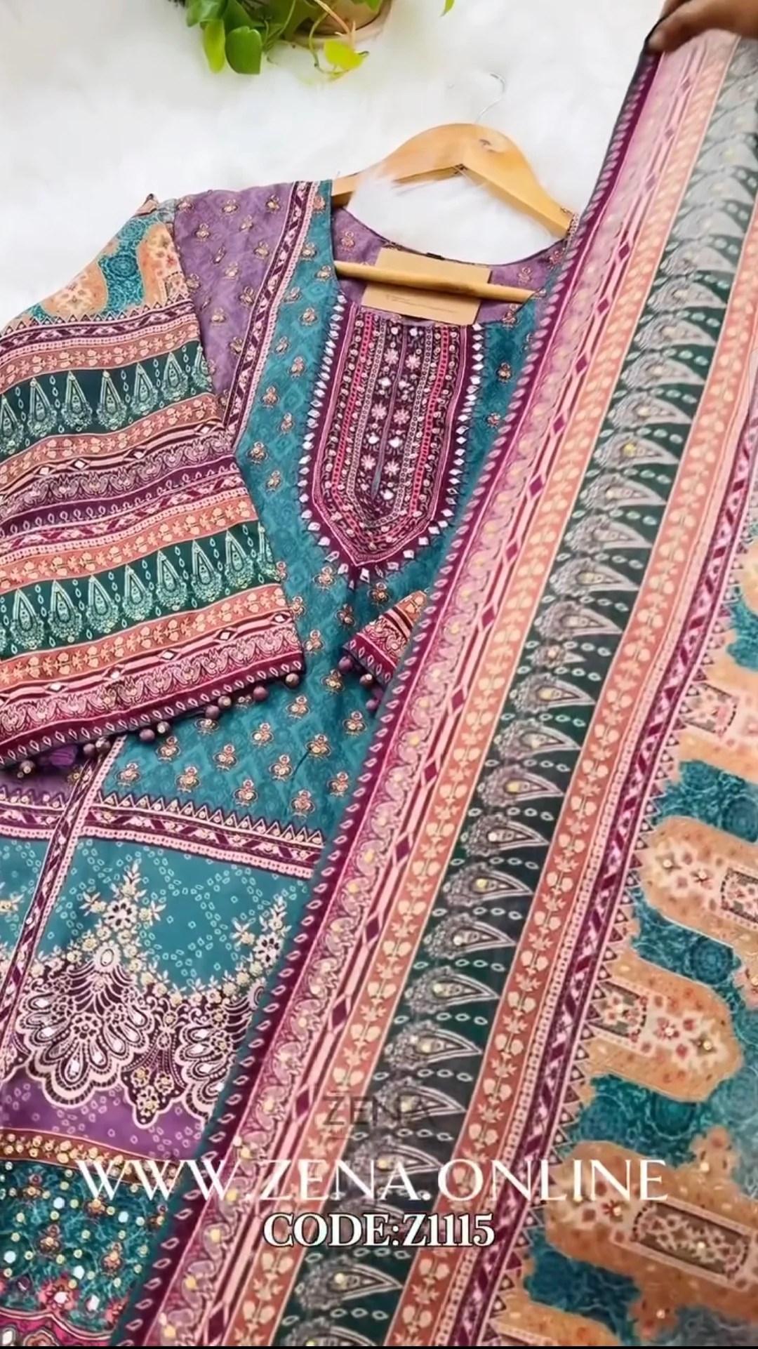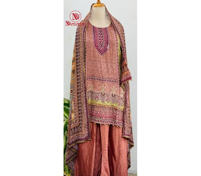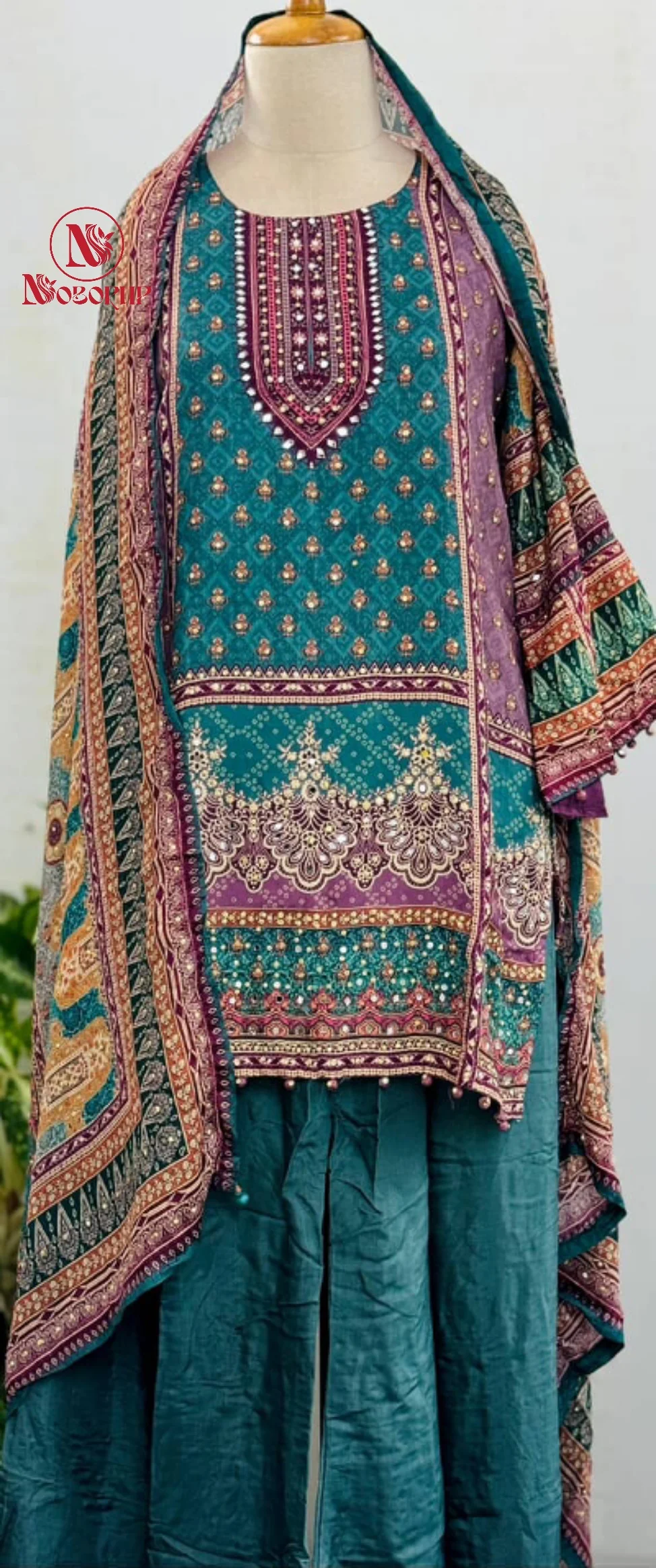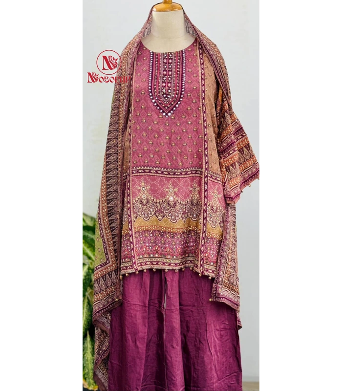 🌿 Jama – Premium Vangchur Fabric Digital Floral Print + Stone Work