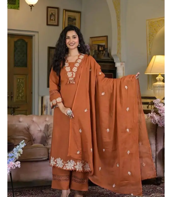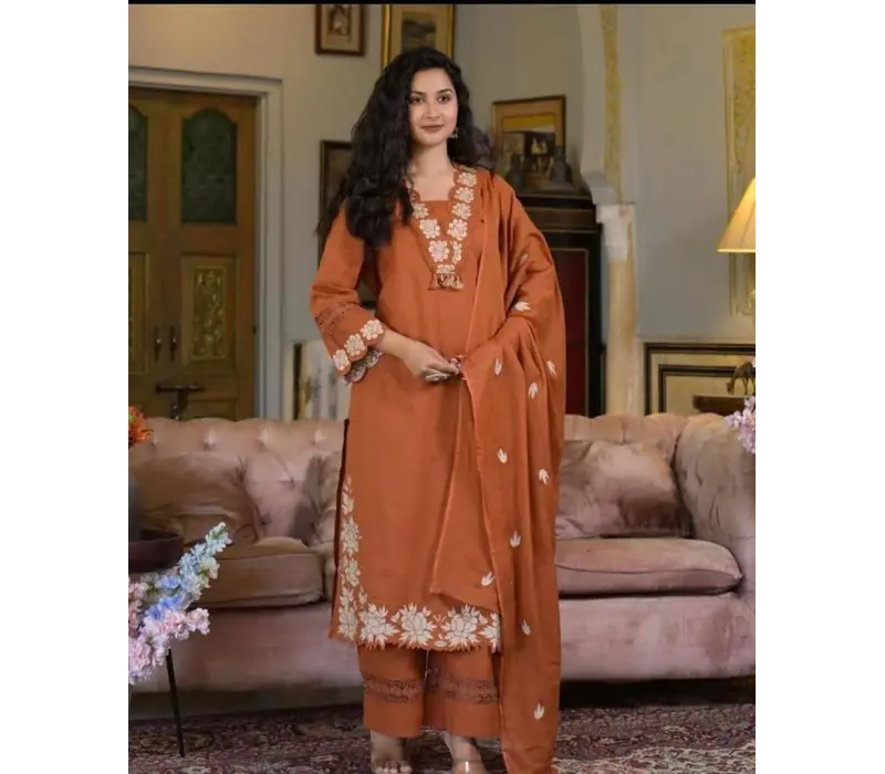 Fine Cotton Embroidred Three Piece