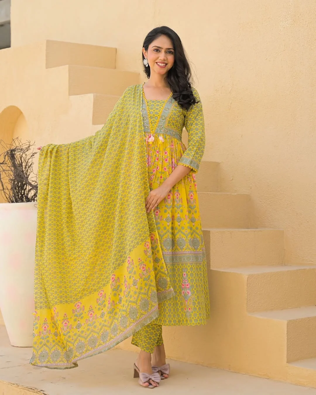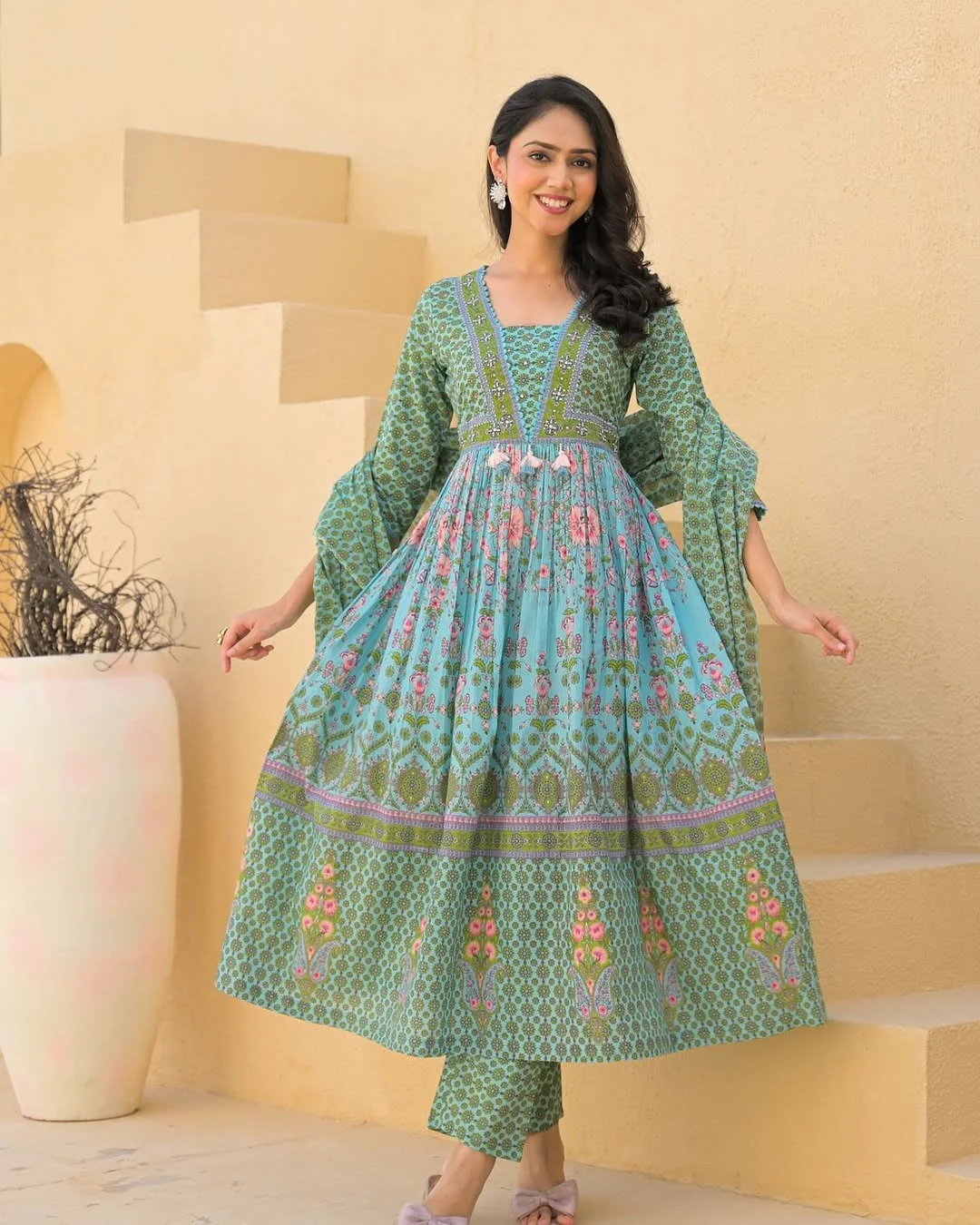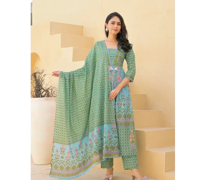 Pure Suti Gown Three Piece Set