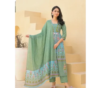 🌿 Jama – Premium Vangchur Fabric Digital Floral Print + Stone Work +